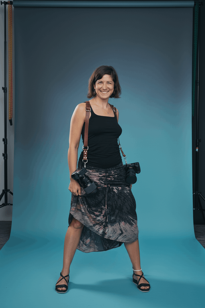 Soy Ana Cuesta, fotógrafa en Sevilla y actriz de corazón. Desde pequeña sentí que la luz abrazaba las historias: un gesto, una risa tímida, un silencio que lo dice todo. Fotografía, para mí, es guardar lo que importa para volver a mirarlo cuando la vida corre demasiado.